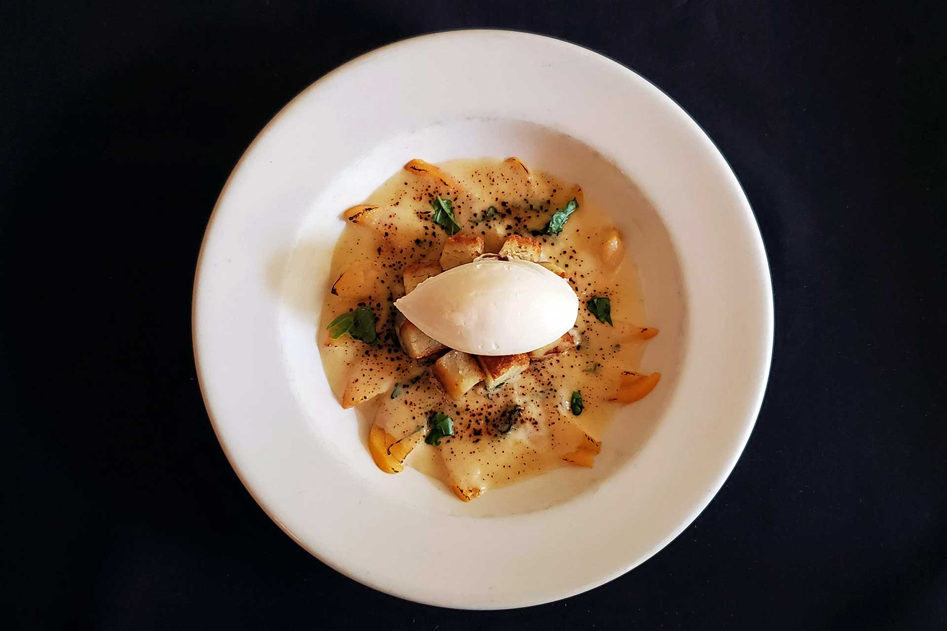 His signature style balances classic French technique with American comfort, often punctuated by unexpected global flavors. Whether it’s a cardamom-infused chocolate mousse, a rum-soaked Baby Pineapple Baked Alaska, or his popular Banana Bread Pudding made with fresh-baked croissants, his creations are as balanced as they are inventive. One of his most celebrated signature desserts remains a fresh berry sauté in balsamic syrup, served with a delicate fromage-blanc sorbet.